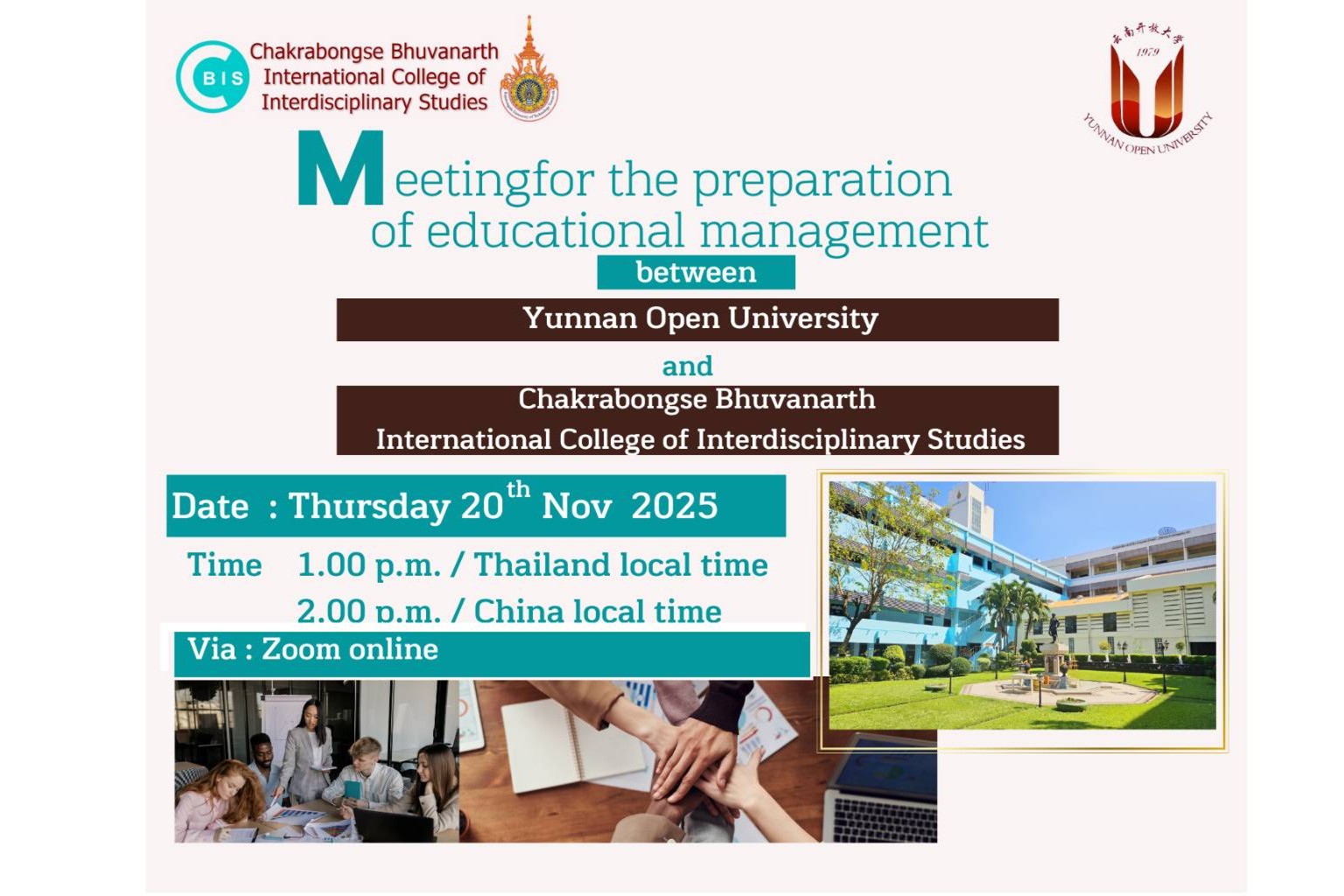 Signing ceremony of memorandum of understanding between Yunnan Open University and Chakrabongse Bhuvanarth International College of Interdisciplinary Studies 18-08-68